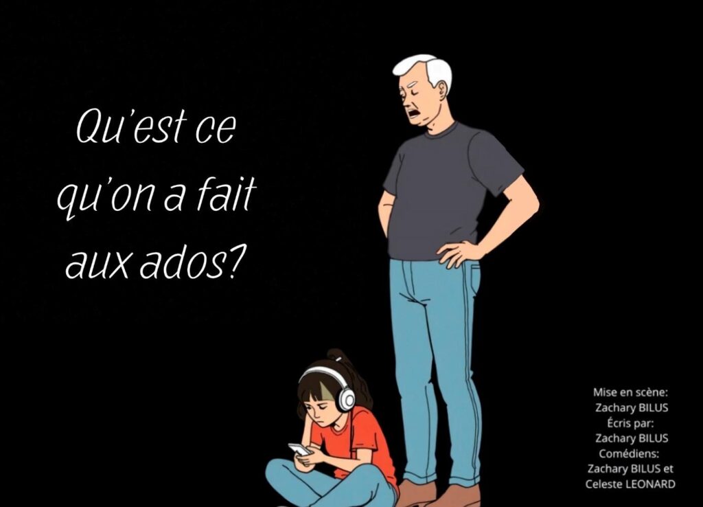 Cette pièce de théâtre met en lumière les difficultés que rencontrent les adolescents d’aujourd’hui. A travers une série de petites scènes illustratives, nous aborderons ces sujets avec une pointe d’humour afin de faire réfléchir tout en divertissant.
